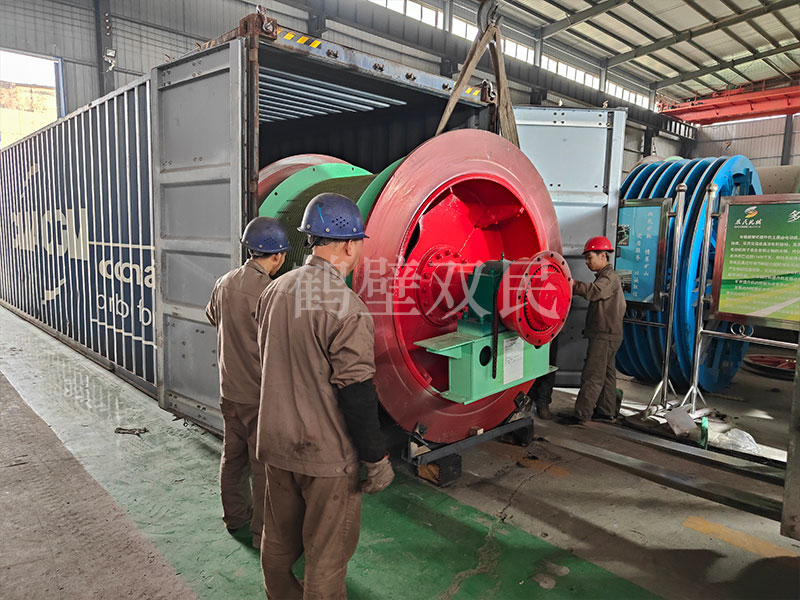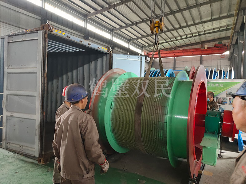 就剩下卷筒了,經過幾次努力,終于將卷筒裝入集裝箱內。完成了本次礦用提升絞車的裝箱工作。