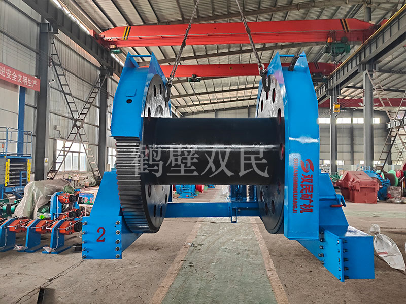 本絞車主要用于煤礦、金屬礦和非金屬礦豎井井筒掘進時懸吊吊盤、水泵、水管、注漿泵、風筒等掘進設備和張緊穩繩,該絞車系雙鋼絲繩懸吊。將減速機上的差動手把放在差動位置,若張緊穩繩,可使兩根穩繩的張緊力保持相等;