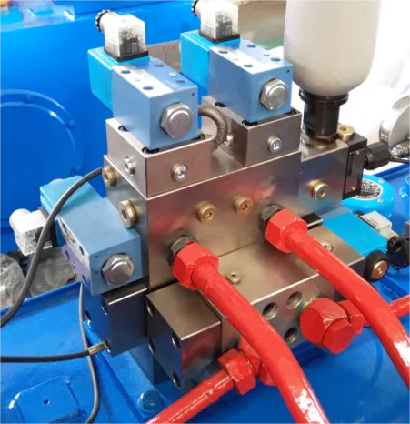 采用獨立的液動換向閥,使閥組油路塊的油孔設計得到了進一步簡化。中信重工 E6161B/E6160B 型液壓站的液壓閥組的應用如圖7 所示。