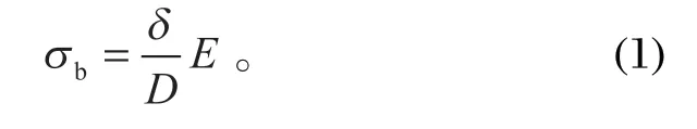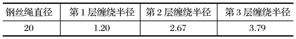 式中:δ 為鋼絲繩的直徑,mm;E 為鋼絲繩的彈性模量,MPa;D 為鋼絲繩纏繞天輪的直徑,mm。