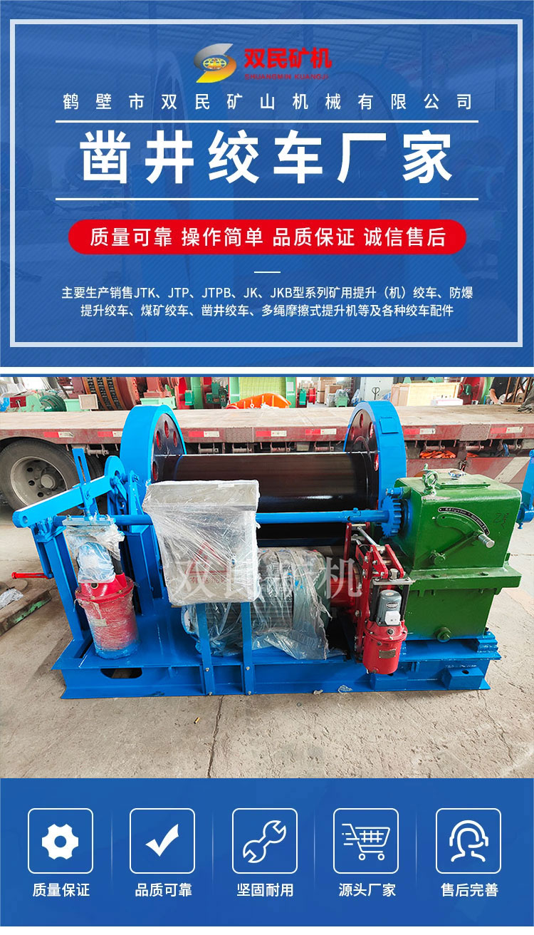 鶴壁市雙民礦山機械有限公司鑿井絞車廠家,以制造大型礦山提升設備,電器成套自動化控制系統(tǒng)為主的科研型高科技企業(yè),是國家礦山專用設備及配件產(chǎn)品定點生產(chǎn)單位。主要生產(chǎn)、銷售JTK、JTP、JTPB、JK、JKB、JKM、JKMD型系列礦用提升絞車、礦井提升機、多繩摩擦式提升機、JZ型鑿井絞車及礦山各種成套設備及配件。