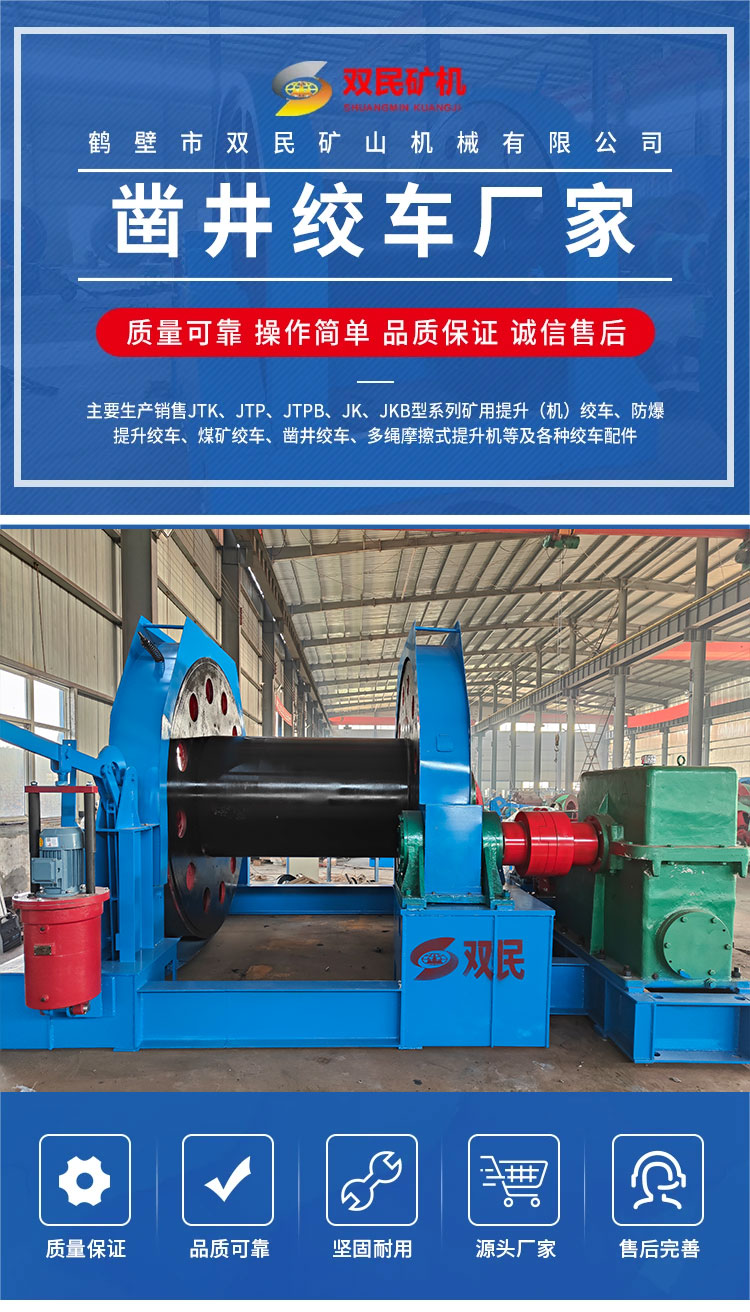 鶴壁市雙民礦山機械有限公司是以制造大型礦山提升設(shè)備,電器成套自動化控制系統(tǒng)為主的科研型高科技企業(yè),是國家礦山專用設(shè)備及配件產(chǎn)品定點生產(chǎn)單位。主要生產(chǎn)、銷售JTK、JTP、JTPB、JK、JKB、JKM、JKMD型系列礦用提升絞車、礦井提升機、多繩摩擦式提升機、JZ型鑿井絞車及礦山各種成套設(shè)備及配件。