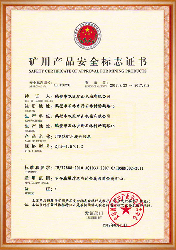 礦用產品安全標志證書